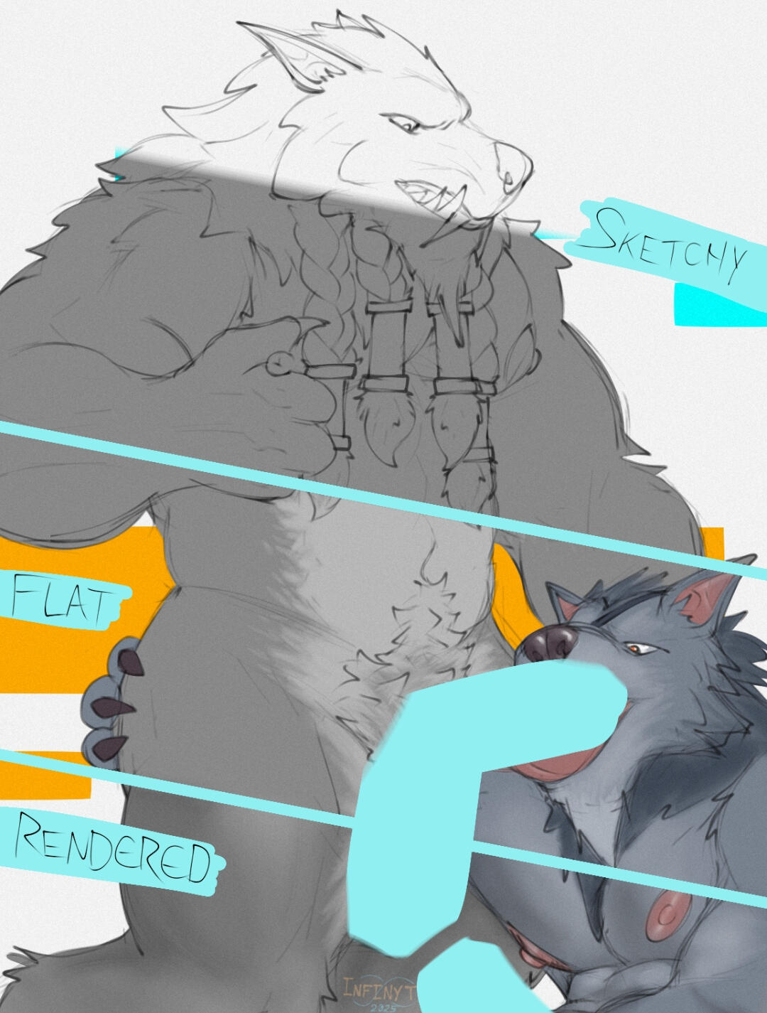 To start out, my prices vary and change a lot per commission. Here's my method of giving you a proper price:You tell me your idea in detail and character reference(s). I doodle some stuff up for free to get a feel for it, then double down on an estimate.The following is simply an example of my thinking while I give you a price.These are the general ranges: